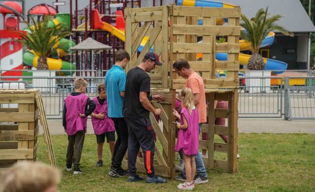 Met stoere handschoenen aan en met een bouwkundig inzicht proberen jullie een stabiel bouwwerk te creëren met verschillende maten banden. Het is een uitdaging die teamwork, communicatie en probleemoplossend vermogen vereist, en het zal de band tussen jou en je teamgenoten versterken.